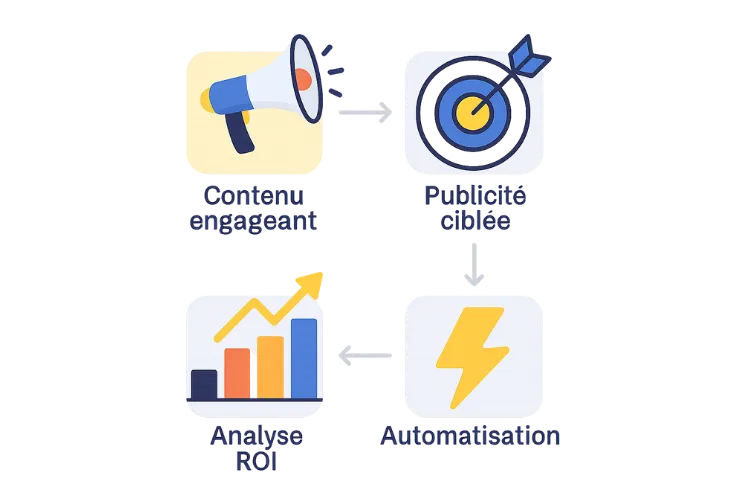 Grâce à un mix gagnant de visuels engageants, de campagnes publicitaires précises et d’automatisations intelligentes, nous transformons vos abonnés en clients et vos likes en ventes réelles.